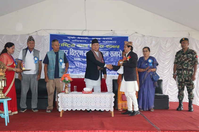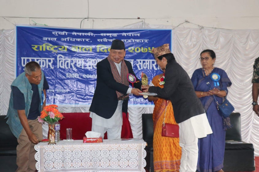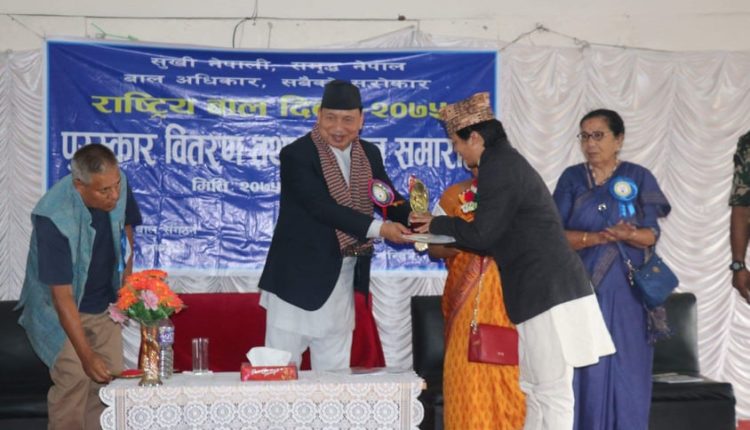काठमाडौँ, ३ असोज – उपराष्ट्रपति नन्दबहादुर पुन ‘पासाङ’ले प्रसिद्ध गीतकार टीका चाम्लिङलाई एक समारोहमा ‘उत्कृष्ट बालगीत पुरस्कार’द्वारा पुरस्कृत गर्नुभएको छ । नेपाल बाल संगठन र रेडियो नेपालद्वारा संयुक्त रुपमा ‘राष्ट्रिय बाल दिवस’का अवसरमा आयोजित राष्ट्रिय बाल गीत प्रतियोगितामा गीत रचनातर्फ उत्कृष्ट भएबापत चाम्लिङलाई पुरस्कार प्रदान गरिएको हो ।