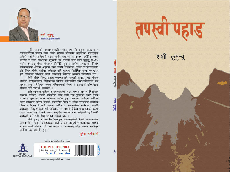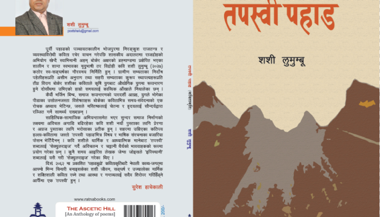 काठमाडौँ – कविताकर्ममा विगत साढे तीन दशकदेखि समर्पित कवि शशी लुमुम्बू आफ्नो नवीनतम् कविताकृति ‘तपस्वी पहाड’ लिएर आएका छन् । प्रगतिशील काव्यफाँटमा भिन्न शिल्प र शैलीसहित सङ्ख्यात्मकतालाई भन्दा गुणात्मकतालाई ध्यानमा राखेर जीवनमुखी कविता लेखिरहेका उनको यसअघि ‘पहाडबूढो’ नामक प्रथम कविताकृति र बेनजिर भुट्टोको जीवनी ‘रक्तरञ्जित जीनकथा’ प्रकाशित छन् । यो उनको तेस्रो कृति हो । कथा, निबन्ध, समीक्षा, संस्कृति लगायतका विधामा कलम चलाउने उनको मूख विधा भने कविता नै हो ।
