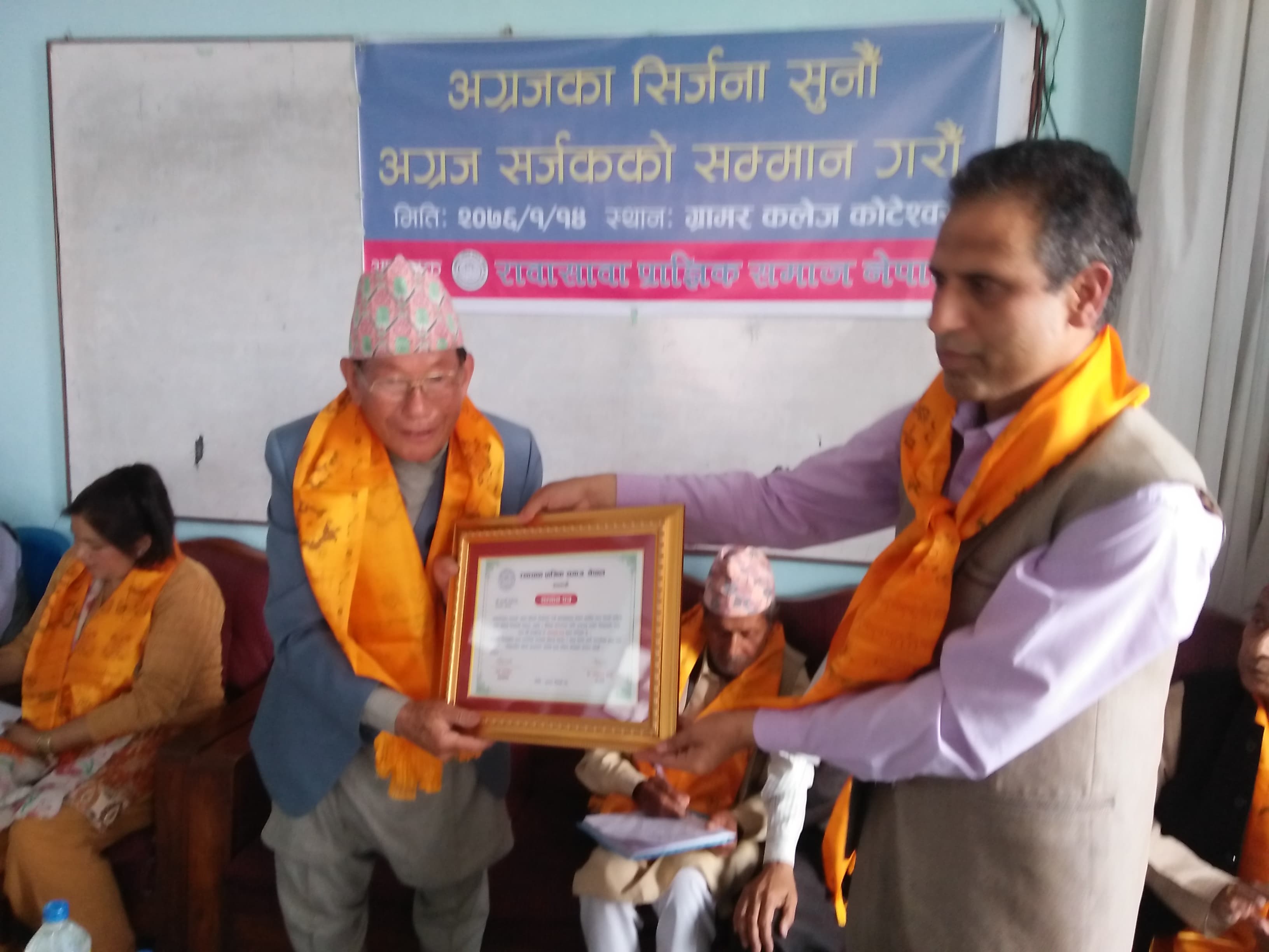रावा सावा प्राज्ञिक समाज नेपालले गर्यो अग्रज सर्जकको सम्मान