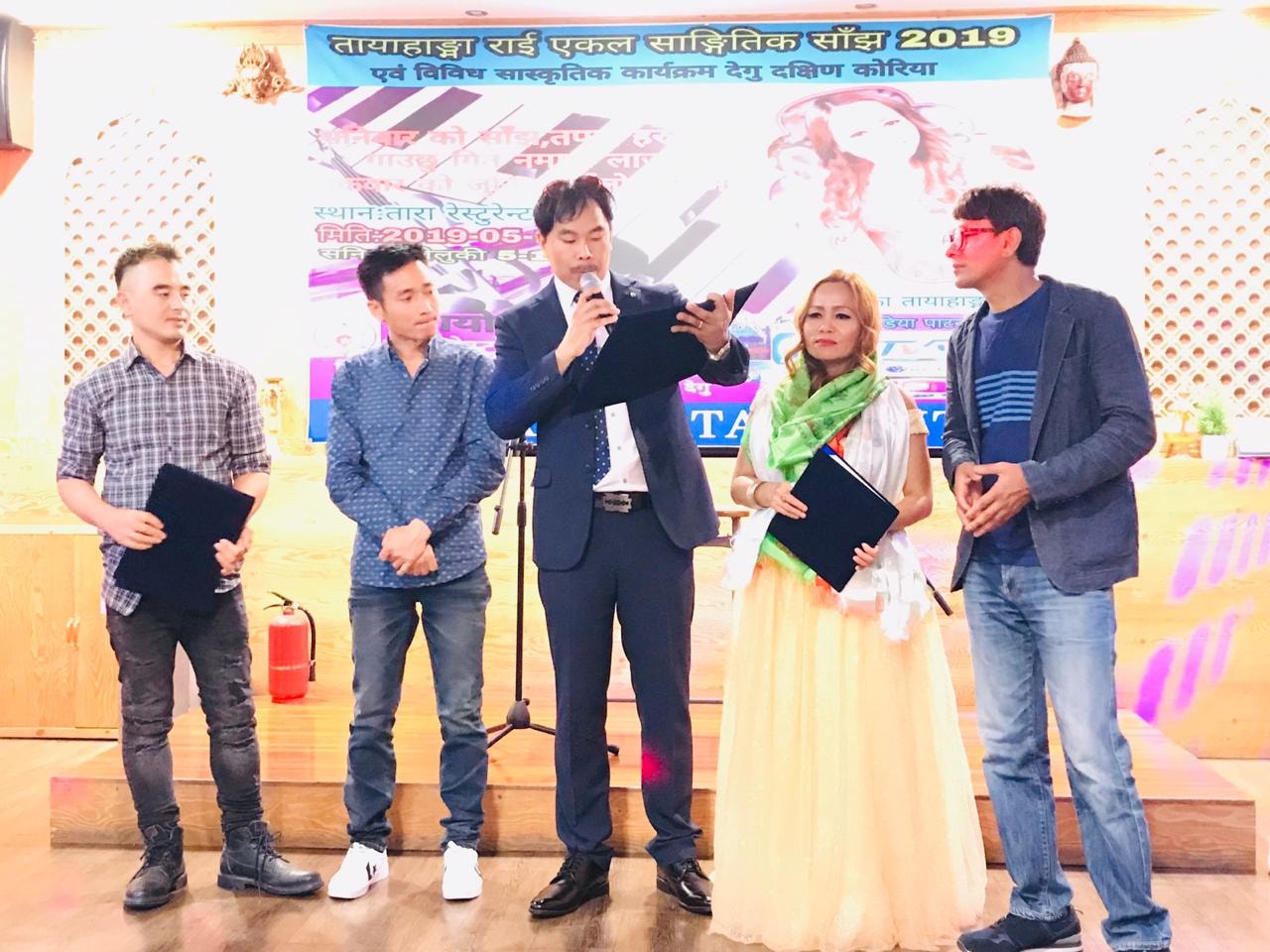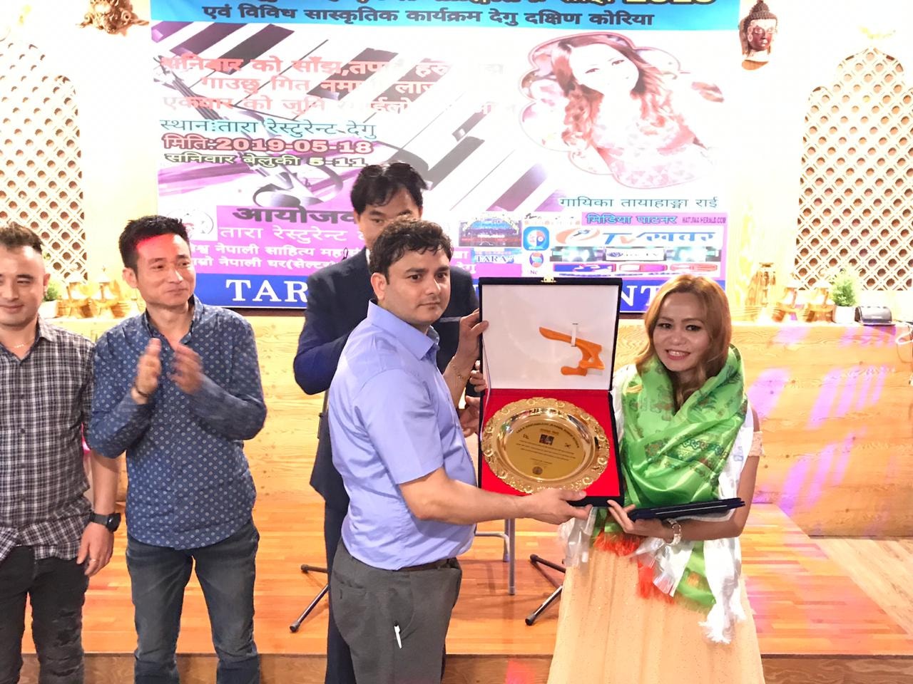 दक्षिण कोरिया – चर्चित गायिका तायाहाङ्मा राईको एकल सांगीतिक साँझ २०१९ एवं विविध सांस्कृतिक कार्यक्रम दक्षिण कोरियाको तेश्रो ठूलो शहर देगुमा अवस्थित रेस्टुरेन्टमा सभ्य र भब्यताका साथ शनिबार साँझ सम्पन्न भएको छ ।