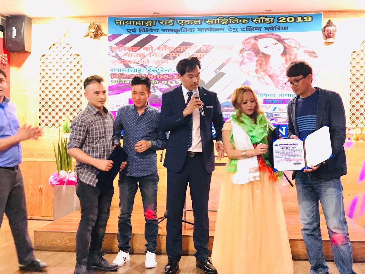 आयोजकको तर्फ बाट गायक रुबिन रेग्मी ,गायक सुशील पुन ,गायक जीवन पुन ,डान्सर मिन्हा लि ,कार्यक्रम सफल बनाउन महत्त्वपूर्ण भुमिका निर्वाह गर्नु हुने बिक्रम शर्मालाई सम्मान स्वरुप प्रमाणपत्र प्रदान गरिएको थियो भने कार्यक्रममा विशेष भूमिका निर्वाह गर्नु हुने चिरञ्जीवी पाण्डे ज्युलाई धन्यवाद ज्ञापन पत्रले सम्मान पनि गरिएको थियो । यसै गरि आयोजकको तर्फबाट गायिका तथा संगीतकार तायाहाङ्मा राईलाई तारा रेस्टुरेन्टको तर्फबाट निक्कै नै शानदार मायाको चिनो प्रदान गरिएको थियो । विश्व नेपाली साहित्य महासंघ दक्षिण कोरिया शाखा र हाम्रो नेपाली घर (सेल्टर)तथा परामर्श सेवा केन्द्रको तर्फबाट आकर्षक सम्मान पत्र प्रदान गरिएको थियो ।