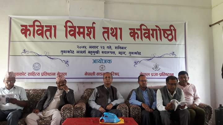 नुवाकोटको विदुर–४, बट्टारस्थित नुवाकोट आदर्श बहुमुखी क्याम्पसको सभाहलमा नेपाल प्रज्ञा–प्रतिष्ठान काव्य विभाग, नेपाली वाङ्मय परिषद् र नुवाकोट साहित्य प्रतिष्ठान, नेपालद्वारा आयोजित ‘कविता विमर्श तथा कवि गोष्ठी’मा उनले सो कुरा बताएका हुन् ।