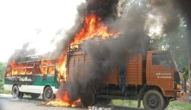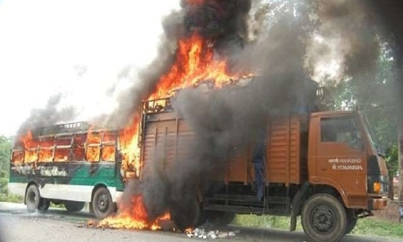 आगजनीबाट ट्रकमा क्षति पुगेकोे छ । नेत्रविक्रम चन्द विप्लव नेतृत्वको नेकपाका प्रवक्ता खड्कबहादुर विश्वकर्मा प्रकाण्डको पक्राउको विरोधमा आज नेपाल बन्द आव्हान गरिएको हो । प्रकाण्डलाई विभिन्न आरोप लगाएर हिरासतमा राखिएको छ ।