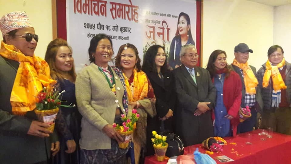 काठमाडौँ । २०७५ पौष १८ गते बुधबारका दिन राजधानीमा आयोजित एक समारोहमा पूर्व संस्कृति, पर्यटन तथा नागरिक उड्डयनमन्त्री कृपासुर शेर्पालगायतका अतिथिहरूद्वारा गायिका जुनी खालिङ राईको पहिलो गीति एल्बम ‘जुनी’ विमोचन गरियो । नेपाली वाङ्मय परिषद्द्वारा आयोजित उक्त समारोहमा प्रमुख अतिथि पूर्व मन्त्री शेर्पाले गीत–संगीतले समाजलाई परिवर्तन गर्ने सामथ्र्य राख्ने बताए । उनले भने, ‘त्यसैले सार्थक गीत–संगीतको प्रवद्र्धनमा कलाकारहरू लाग्नु पर्छ । उनले गायिका राईको एल्बम ‘जुनी’भित्रका गीतहरू श्रुतिमधुर रहेको दाबी गरे ।