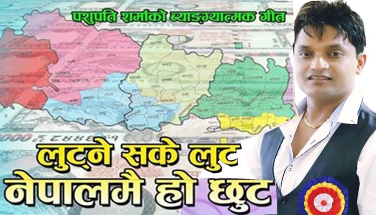 – ईन्द्र नार्थुङ्गे हिजो मिती २०७५ साल फागुन ५ गते आइतबार, अघिल्लो दिन मात्रै यूटुवबाट हटाइएको पशुपति शर्माको गीत “लुट्नसम्म लुट कान्छा, अरु देशमा पाइन्दैन नेपालमै छ छुट” बोलको गीत काठमाण्डौको सडकमा बजाएर छमछम नाचिरहेको दृश्य टिलिभिजनको स्क्रीनमा देख्दा लाजले रातो-पिरो भएँ । मेरो छेवैमा कुनै विदेशी हुन्थ्यो र उसले गीतको भाव बुझ्थ्यो भने मेरो हालत अझै कस्तो हुन्थ्यो होला ?