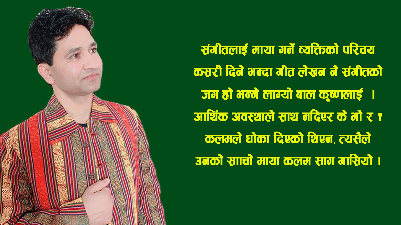 आर्थिक शंकटले सांगीतिक यात्रालाई साथ दिने कुरै भएन । संगीतलाई माया गर्ने व्यक्तिको परिचय कसरी दिने भन्दा गीत लेखन नै संगीतको जग हो भन्ने लाग्यो बाल कृष्णलाई । आर्थिक अवस्थाले साथ नदिएर के भो र ? कलमले धोका दिएको थिएन, त्यसैले उनको साँचो माया कलम सँग गाँसियो ।