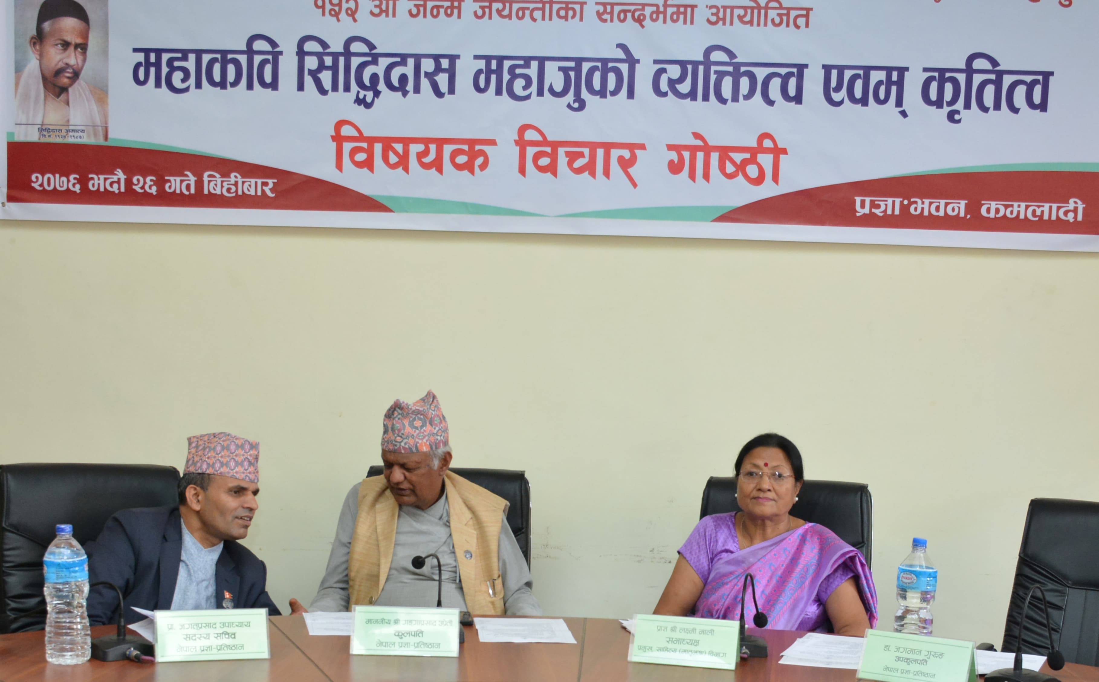 २०७६ भदौ २६ गते, काठमाडौँ । नेपाल प्रज्ञा–प्रतिष्ठान साहित्य (मातृभाषा) विभागद्वारा नेपाल भाषाका महाकवि सिद्धिदास महाजु अमात्यको १५२ औँ जन्मजयन्तीका अवसरमा उहाँको व्यक्तित्व तथा कृतित्वका बारेमा विचार गोष्ठीको आयोजना गरियो ।