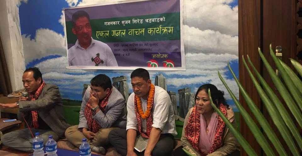 काठमाडौं, २० कात्तिक । नयाँ अनलाइन डटकमले सिर्जना श्रृङ्खला कार्यक्रमको आयोजना गरेको छ । गजलकार सुजन सिरेङ चङबाङको एकल गजल कार्यक्रम गरी सिर्जना श्रृङ्खला गरेको हो ।