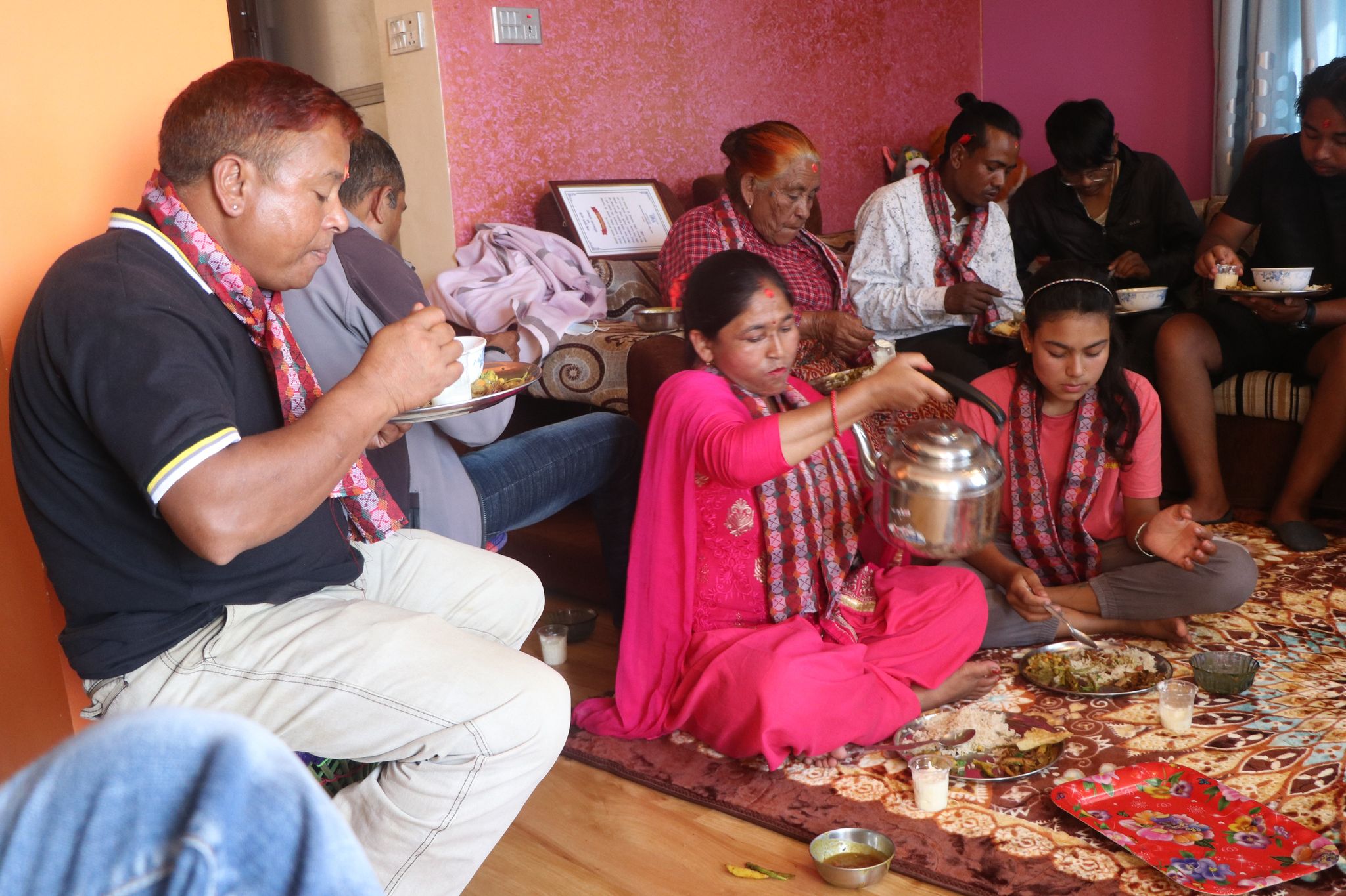 दलित प्रतिनिधिहरुलाई खादा,टिका लगाएर सम्मान पत्र सहित घर भित्र प्रवेश गराई सामुहिक भोजन