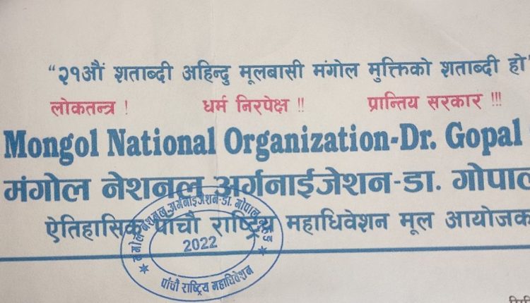 मंगोल नेशनल अर्गनाईजेशन डा गोपाल गुरुङ (एमएनओ -डिजिजी) ले सार्वजनिक गरेको प्रेस विज्ञप्तीमा “२१ औ शताब्दी अहिन्दु मूलवासी मंगोल मुक्तिको शताब्दी हो” भनेर उल्लेख गरिएको छ।